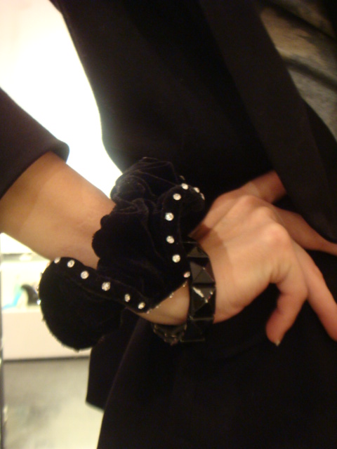 ラインストーンのベロアシュシュ(¥1,000)