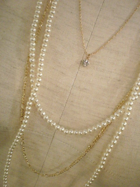 クリアストーンNC&3連パールチェーンSET
