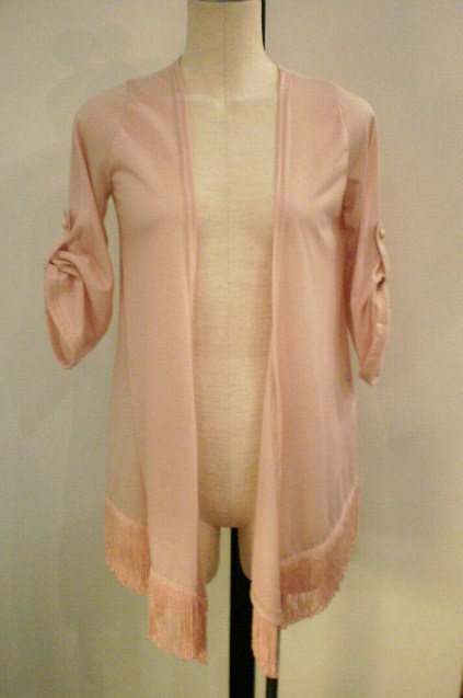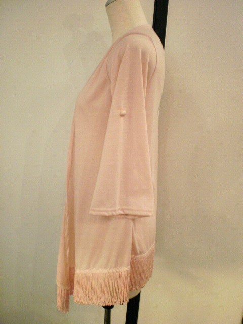 きれいなカラーの、フリンジ前下がりカーデ
