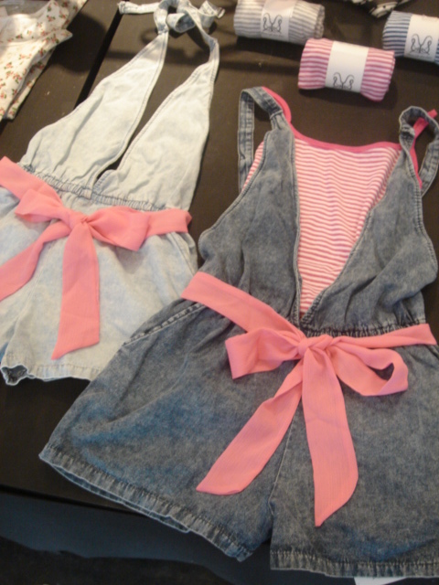 リボン付デニムデザインサロペットが再入荷しています♪