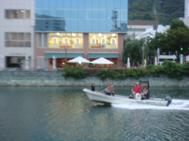 遊覧船がいつも進むルートと、まったく逆方向に逆走している